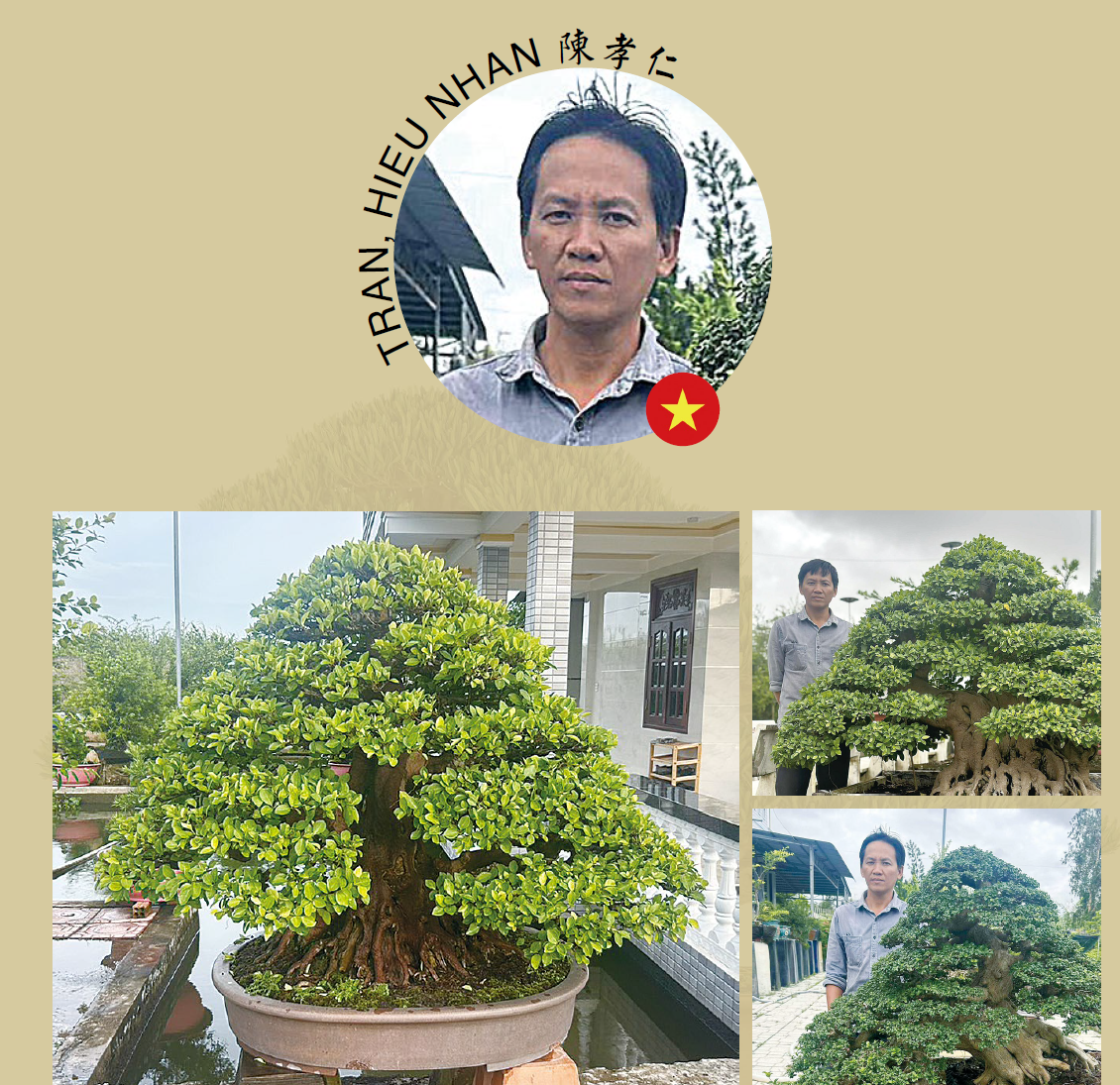 He has never been bored with his bonsai art, having created several hundred bonsai trees ranging in size from small to large. Wrightia Religiosa, Juniper, Buxus, Maba Buxifolia, Ficus,and Premna Microphylla are only a few examples to mention.